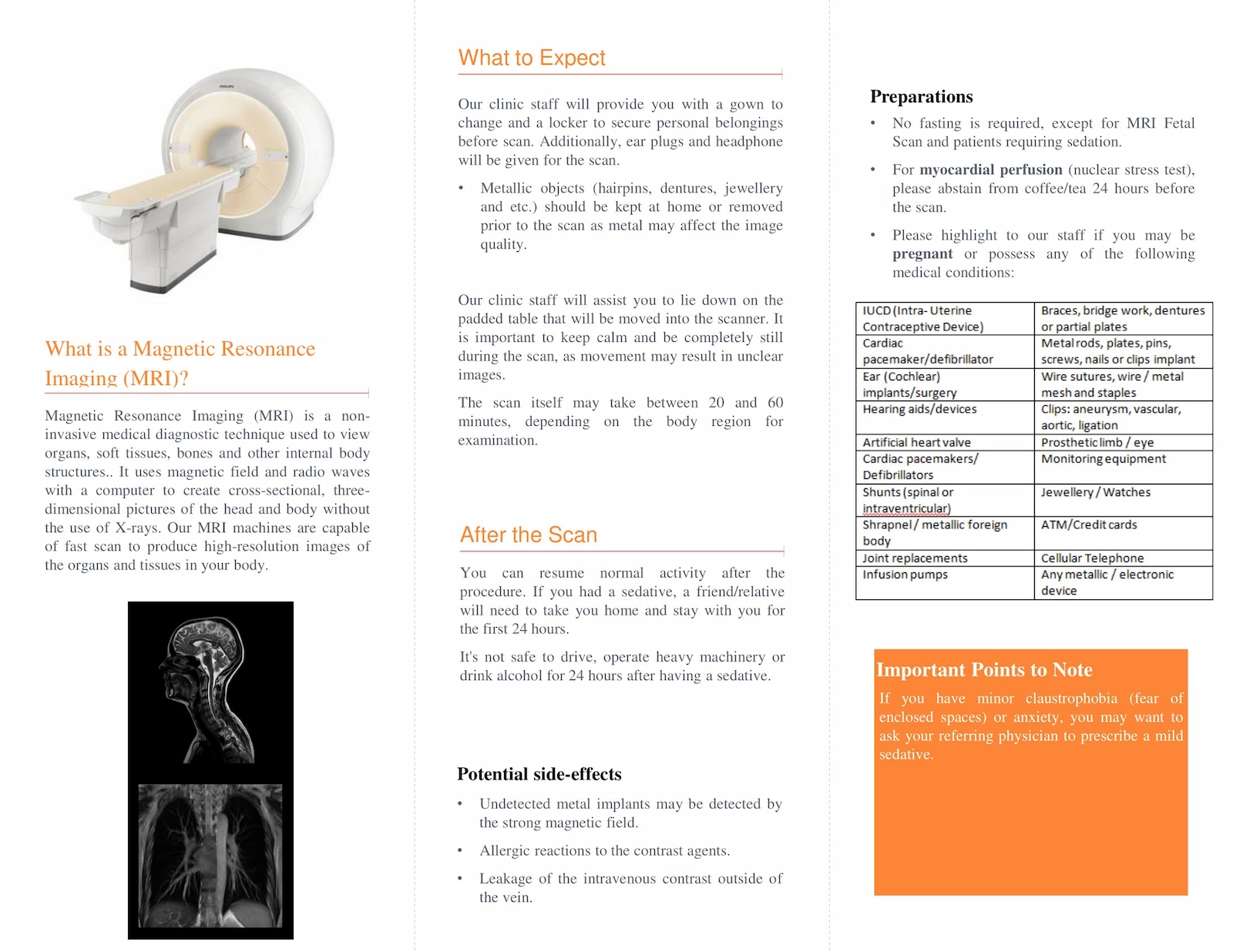 - You may request earplugs to reduce the noise of the MRI scanner.